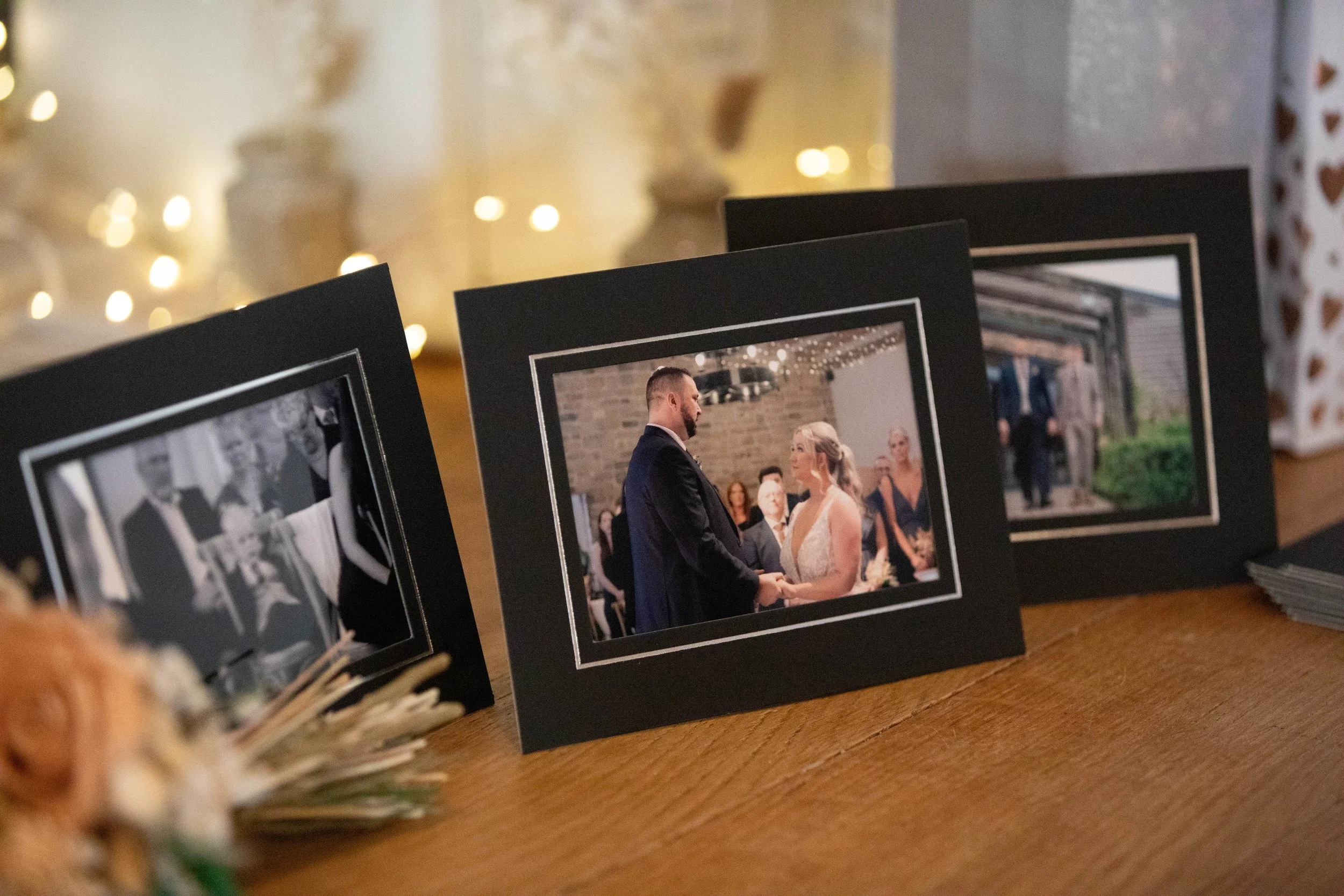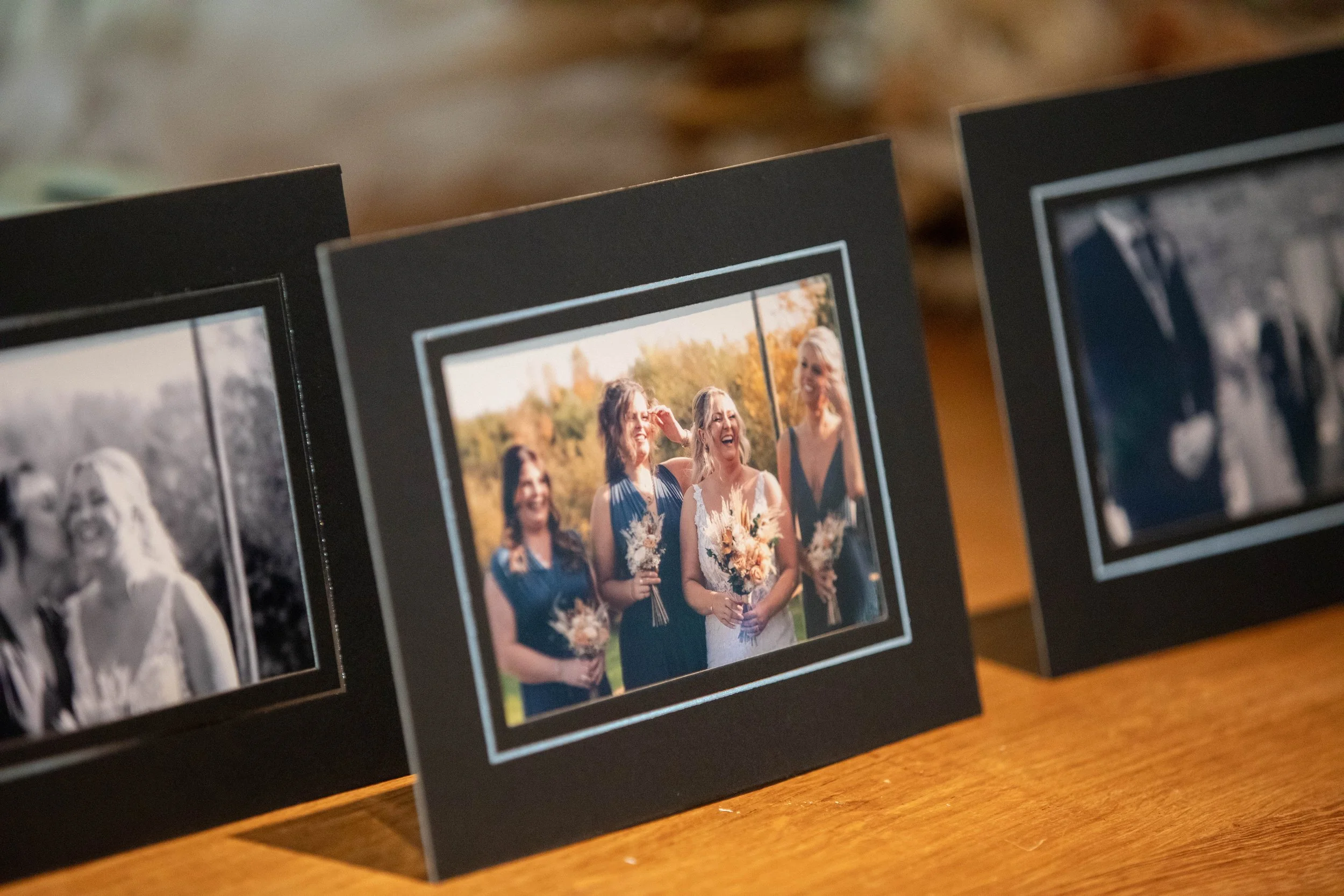 Rather than the traditional wedding guest book, why not have a stunning Signature Frame at your wedding? We use a photo from your pre wedding shoot, your chosen image is printed and mounted in an extra wide smooth mount. On the day of your wedding the frame is displayed in the reception venue and using the pens provided, your guests write their messages around the photo-mount. After the wedding you can swap the image for one from your wedding day and display it on your wall!